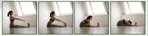 Este exercício me deixa entusiasmada! Ele proporciona um alongamento completo, abrangendo a parte posterior da coxa, os glúteos, os quadríceps e até mesmo os músculos das costas. Considero-o uma excelente preparação para fazer a abertura.